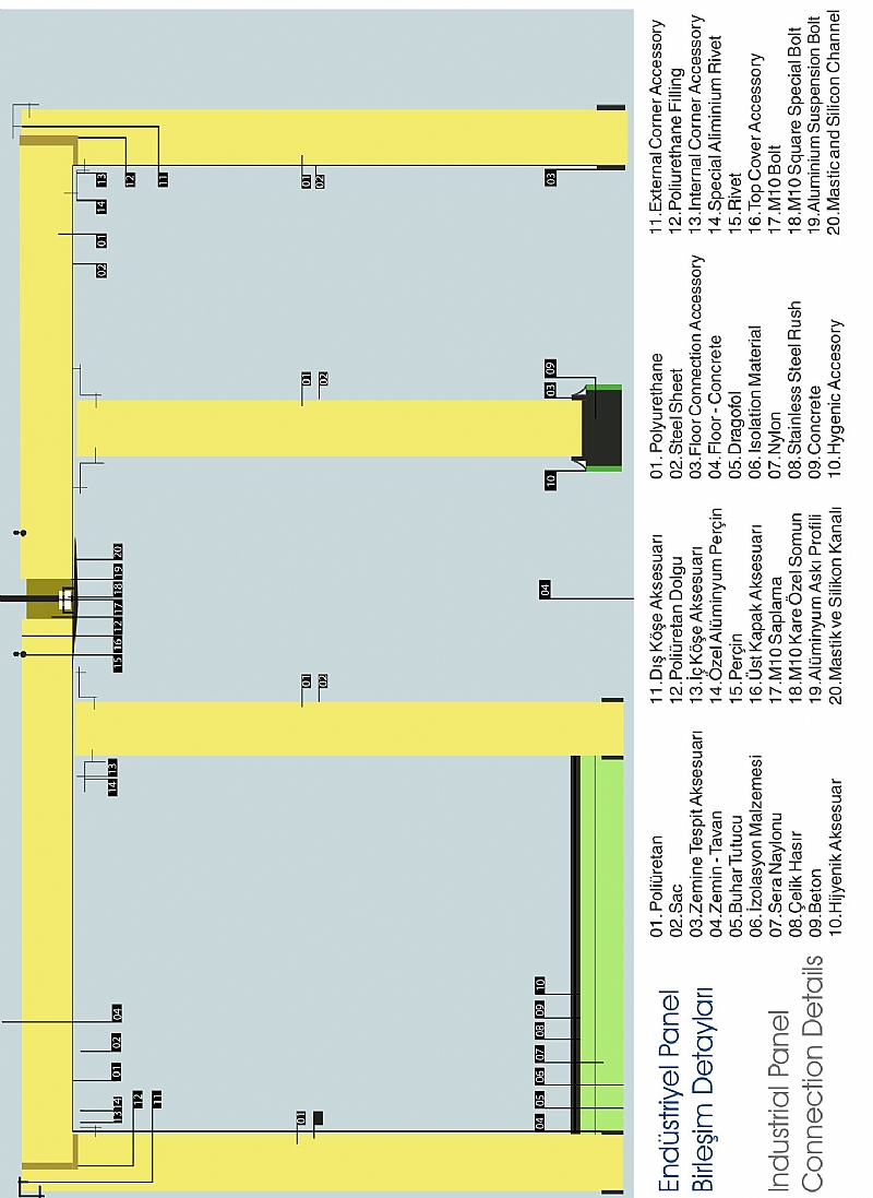 Endüstriyel soguk depo paneli ile ayni özellikte olan bu panel, yüzeyindeki oluklarin olmayisindan dolayi daha hijyenik bir ortam olusturmakta kullanilmaktadir.